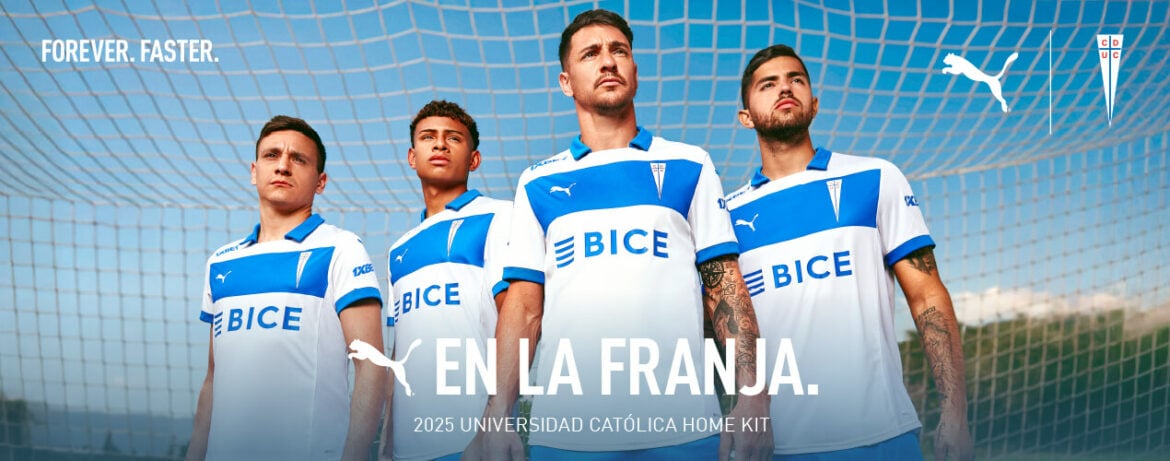 A nova camisa titular da Universidad Católica do Chile é branca e traz como destaque, a aplicação da tradicional faixa horizontal azul, mais alta, no peito, assim como feito pela primeira vez em 1930 e no primeiro título nacional do clube, em 1949.